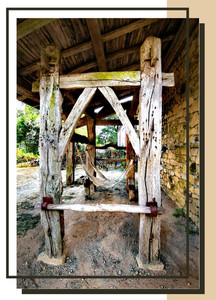 Il est temps de ferrer la belle Marguerite. Oui, je connais même le nom des animaux du village. Il faut dire que nous ne sommes pas bien nombreux et on est souvent chez les uns et chez les autres, notamment en période de moisson pour s'entraider. Toutes les mains disponibles sont les bienvenues en cette période chargée. Mais revenons à Marguerite qui est installée au travail (une ossature en bois qui permet de la maintenir le temps du ferrage) dans l'attente d'être équipée de nouveaux fers. Il faut d'abord lui couper la corne des sabots, puis apposer le fer encore chaud sur la corne afin que celle-ci s'imprègne du fer. Puis Mr Tison fait refroidir le fer et le réinstalle. Il insère ensuite des rivets pour maintenir le fer en place. Pas de panique, notre belle Marguerite n'a pas du tout mal et est même très calme durant cette intervention. Ça va l'aider à mieux travailler dans les champs. On applique des fers sur les sabots des vaches, des bœufs ou des chevaux.